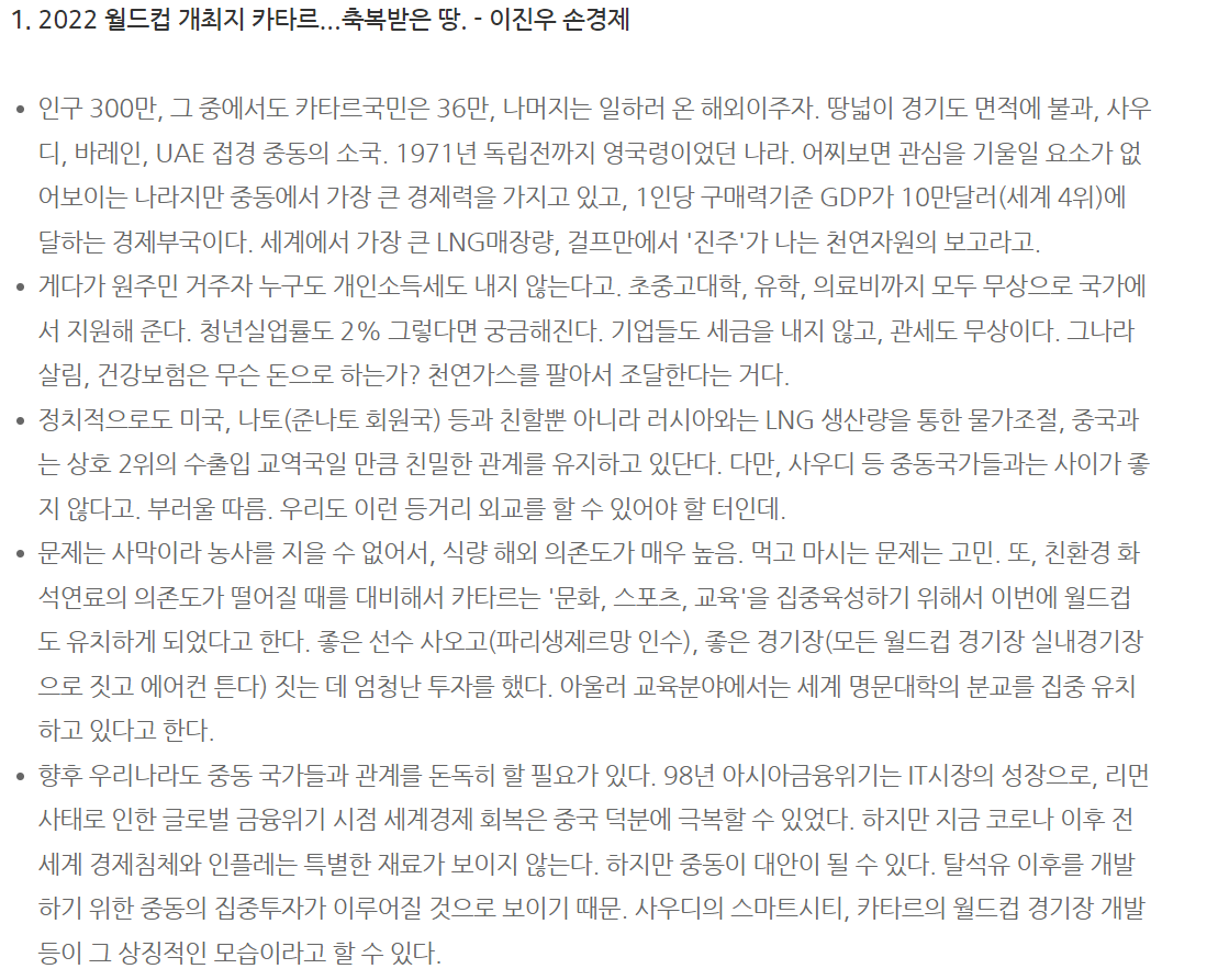| ✔️ | [카타르] 월드컵 개최하는 카타르, 어떤 나라일까? 🖼️ | Guest | 472 | 0/0 | 22.11.18 12:24 |